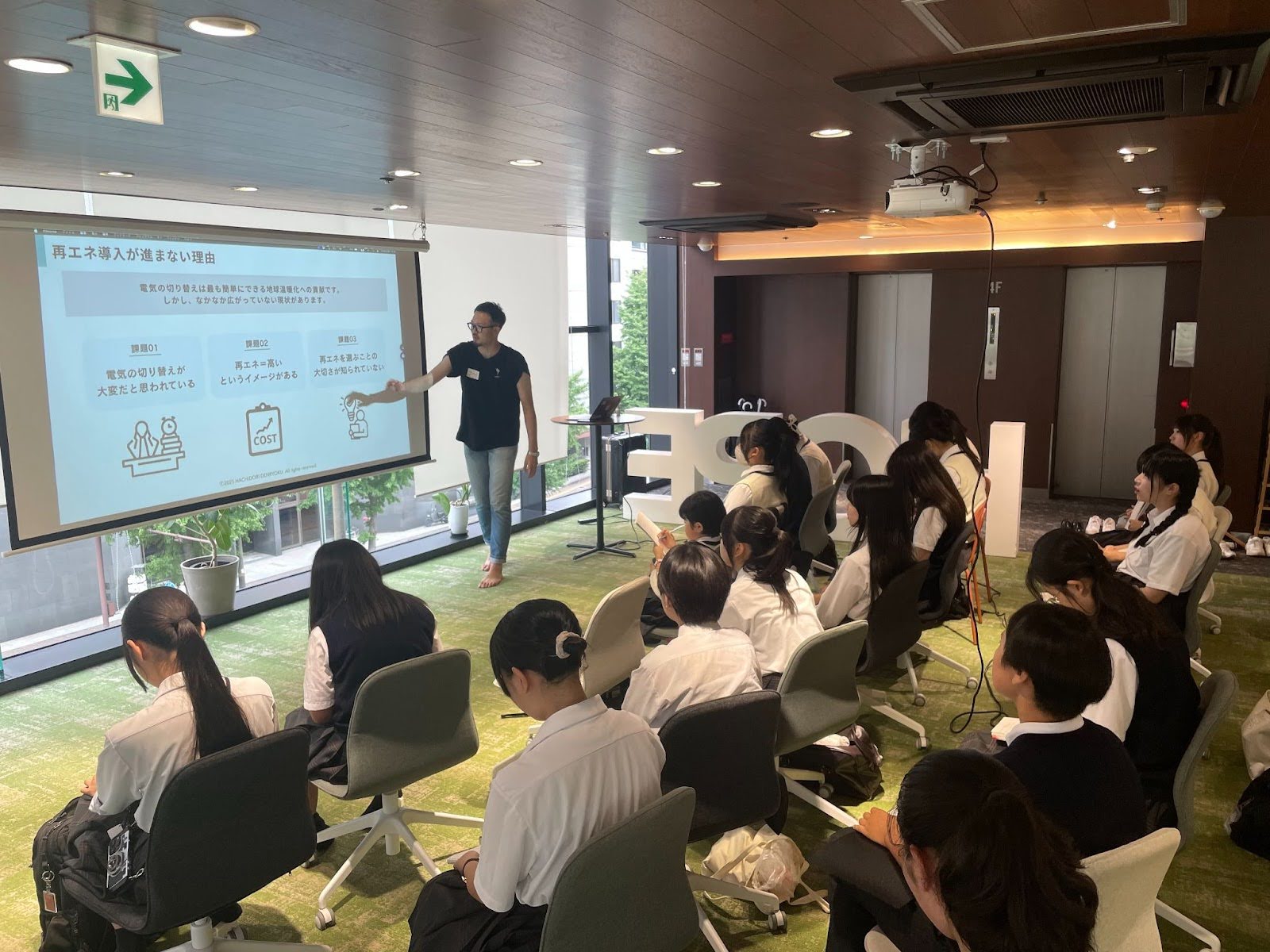このたびハチドリ電力は、福岡女子商業高校の生徒24名とともに、福岡市天神の本社オフィスにて、自然エネルギーをテーマにした特別ワークショップを開催しました。