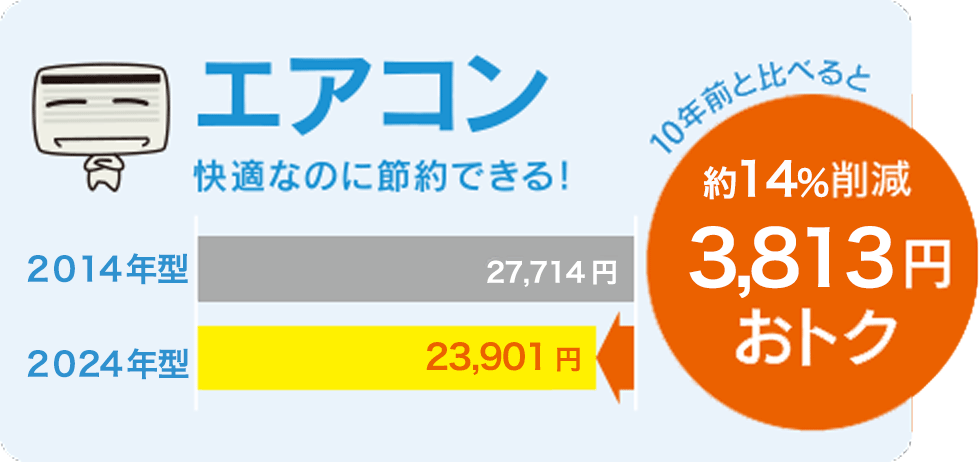 また、最新モデルは省エネ性能が非常に高いため、年間を通して電気代が数千円(10~20%)安くなるケースもあります